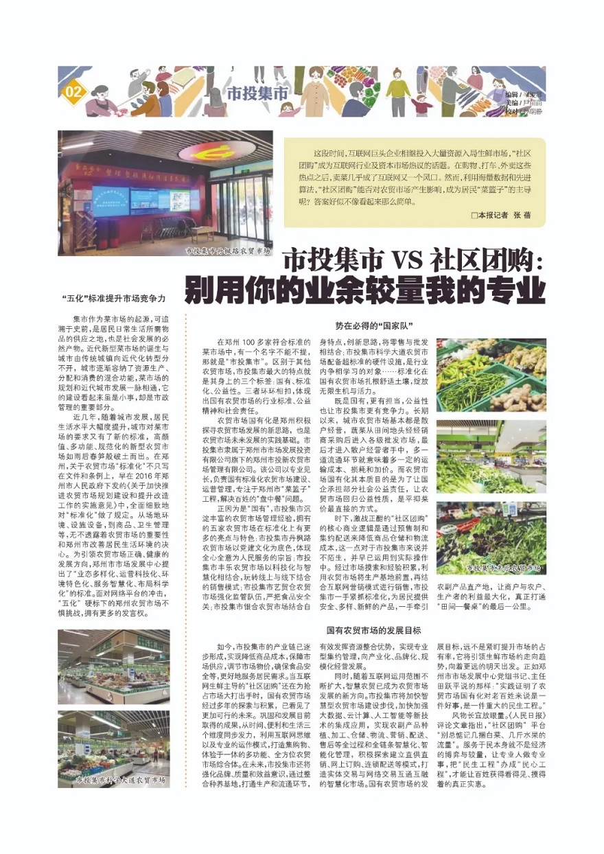 在2020年第48期專題中,我們通過鄭州市市場發展中心的推薦,采訪了鄭州農貿市場里的標桿企業,很多讀者對市投集市產生了濃厚的興趣,什么是國有農貿市場?菜市場的公益性指的是啥?市投集市踐行標準化有什么突出特點?